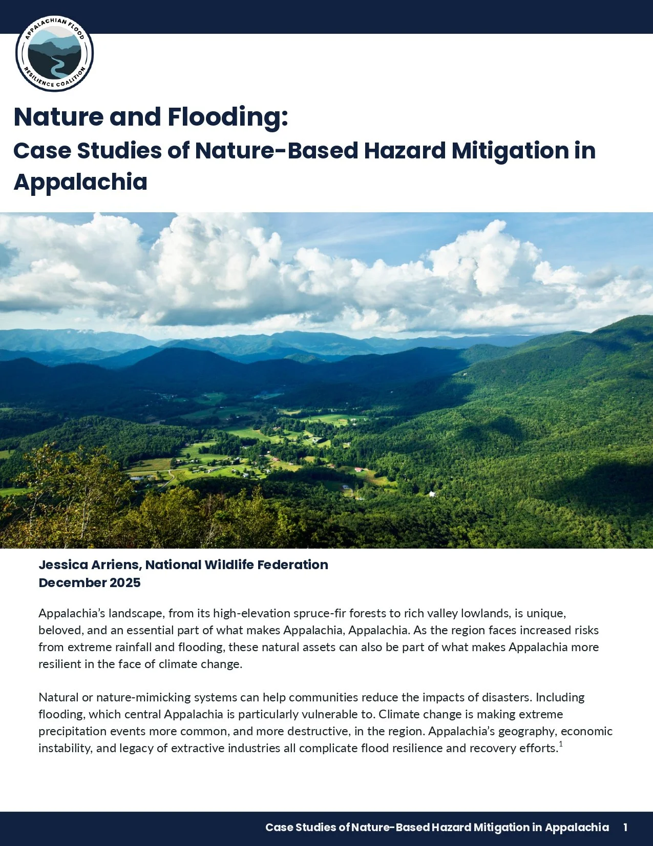 Nature and Flooding: Case Studies of Nature-Based Hazard Mitigation Appalachian Regional Reforestation Initiative - Case Studies of Progress Housing Damage from the 2022 Kentucky Flood Mine Land Reforestation Needs in Appalachia Virginia Flood Resilience Funding Outreach Assessment Central Appalachian Mine Reforestation Assessment Tool The Versatility of Nature-Based Solutions